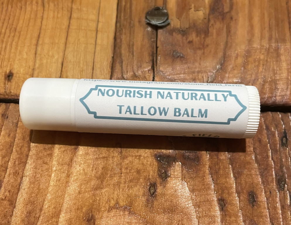 The Tallow Lip Balms are a nourishing balm for your lips! Handcrafted by me (down to the label on the BPA-free, made in the USA tube. The balm is a blend of Stone Field Farm grass-fed tallow, extra virgin olive oil and USA beeswax.