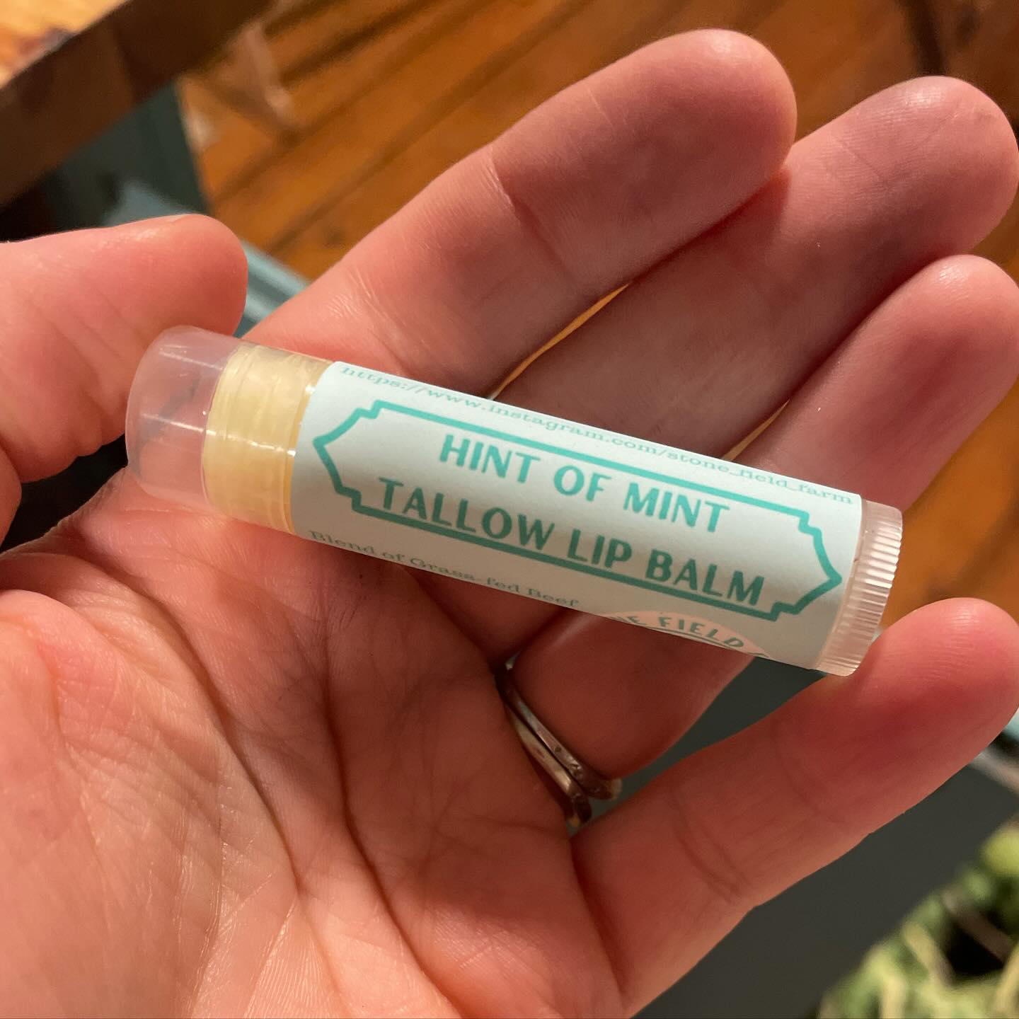Hint of Mint is a nourishing balm for your lips! Handcrafted by me (down to the label on the BPA-free, made in the USA tube. The balm is a blend of regenerative grass-fed tallow, extra virgin olive oil and USA beeswax and it has just the barest touch of peppermint essential oil. Enough to catch a wiff of the smell without any tingly feeling.