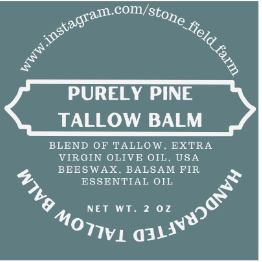 All Purpose Tallow Balm. This is a solid lotion, or a dry skin soother, it works wonders on heels, yet gentle enough for baby bottoms! I use it as my moisturizer now, and on diaper rash. My son likes it on scrapes. For $8 you can snag this cute little 2oz tin and be ready for anything. Blend of Stone Field Farm grass-fed tallow, extra virgin olive oil, USA Beeswax, and Balsam Fir Essential Oil.